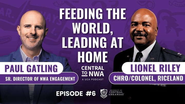 Central to NWA: A UCA Podcast is the University of Central Arkansas’ official platform for deepening its presence and building relationships in Northwest Arkansas. Hosted by Paul Gatling, UCA’s Senior Director of Northwest Arkansas Engagement, the show connects alumni, business leaders, and community partners through interviews and relevant conversations.